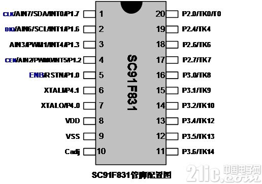 SC91F831是一颗内置电容型触控按键功能的加强型超快速1T 8051工业级Flash微控制器,指令系统完全兼容传统8051产品系列。SC91F831 内部集成有最多10路触控按键电路,其它资源还包括:8KB Flash ROM(内部256Byte可作为EEPROM)、512B SRAM、最多17个 GP I/O(包含11个大电流驱动)、2个16位定时器、1路类IIC的串行通讯接口SIF、最多4路10位高精度ADC、最多4路外部中断口(其中1路是双沿中断)、2路8位PWM、内部1%高精度16M Hz振荡器、软件UART等资源。为提高可靠性及简化客户电路,SC91F831内部也集成有4级可选电压LVR、2.4V基准ADC参考电压、WDT等高可靠电源电路。SC91F831提供一种通过改变IRC频率来实现高速PWM频率高精度步进调整的方法,步进精度小于0.4%。SC91F831具有非常优异的抗干扰性能和抗EMI能力,非常适合应用于雾化器、电磁炉、抽油烟机、消毒柜、电饭煲、电压力锅、面包机等各种小家电和卫浴、灯具等工业控制和消费应用领域。