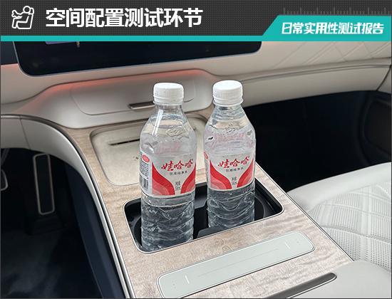 对于车内使用空间的测试,只针对前排触手可及的空间,不包括手套箱、中央扶手箱等需开启的空间。测试方法是将以下固定物品全部放置在前排的各个储物空间内,通过固定物品的放置情况来判断车辆储物空间的表现。测试选定的固定物品为:2瓶常规大小的矿泉水、1部大屏手机、1支口红、1个挎包、1副墨镜、1把折叠雨伞以及1包常规尺寸的抽纸。