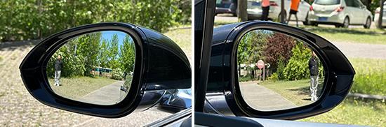 评测车的左/右外后视镜均采用普通镜片,实测左外后视镜视野范围为28.6°,右外后视镜视野范围为27.5°,两侧外后视镜视野范围均处于同级别上游水平。